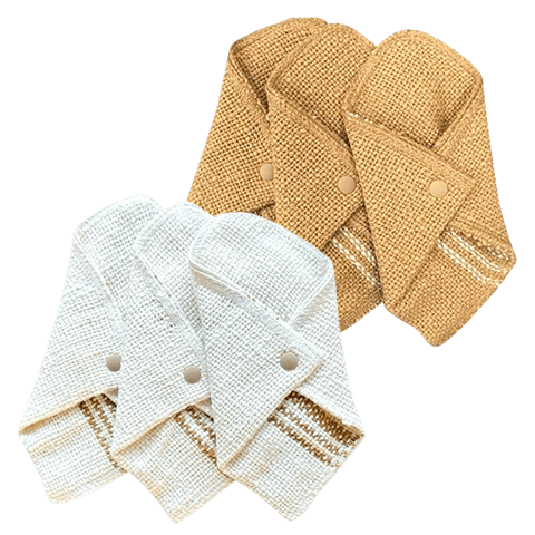 クロス①②③は、手をスリスリしたり、洗顔・洗髪・体洗い、食器洗いに適した大きさです。クロス③④は、睡眠時に腰や肩等、目にのせたりして、毎日のストレスケアにおすすめです。