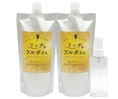 普通のフルボ酸が「自然にできた成分を抽出したもの」だとしたら、アプロの『リッチなフルボさん』は「自然の巡りそのものを再現した発酵ミネラルエッセンス」。独自の原料と製法により、完全国産でお求めやすい価格でのご提供を可能にした商品です。