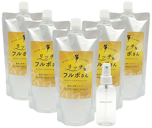 長い年月をかけて自然発酵されたものを抽出する一般的なフルボ酸に対し、アプロの『リッチなフルボさん』は “自然と調和した再現発酵” という独自のアプローチが特徴です。